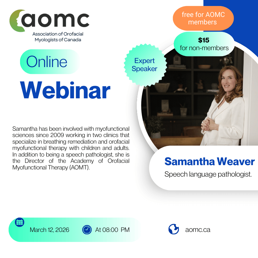 Samantha aa has been involved with myofunctional sciences since 2009 working in two clinics that specialize in breathing remediation and orofacial myofunctional therapy with children and adults. In addition to being a speech pathologist, she is the Director of the Academy of Orofacial Myofunctional Therapy (AOMT).... Webinar Samantha Membership Required You must be a […]
