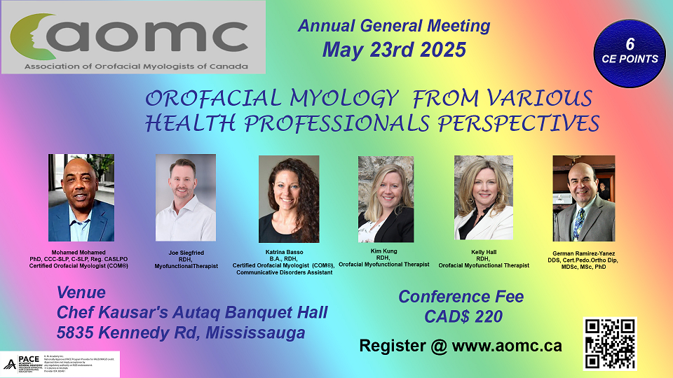The signs and symptoms of OMDs are often interpreted through the lens of the professional evaluating the child. For instance, orthodontist and dental hygienist are concerned with structural issues, while speech pathologist focuses on oral placements for speech sounds. Chiropractor is primarily focused on jaw, neck pain, or activities of daily living. Therefore, an OMD interdisciplinary team is critical for the patient as understanding the whole picture is essential for effective treatment. However, there are four primary treatment goals that a Myofunctional therapist strives to achieve. In this lecture we will briefly discuss the hierarchy of these goals: nasal breathing, lip seal competency, correct tongue placement in mouth, and the proper swallowing.